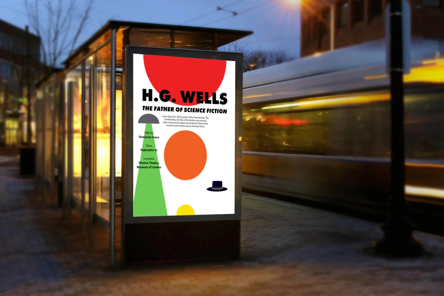 H.G. Wells is known as the father of science fiction. Shown below are designs for a collection of his most famous novels: The Time Machine, The War of the Worlds, and The Invisible Man. Emphasis was brought to the word "The" in each title as it was a motif of the collection. The Invisible Man cover was created using matte paper and the the title was cut out of gloss paper so the viewer could only see the title from the reflection of the light.